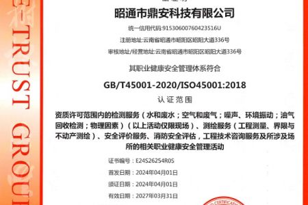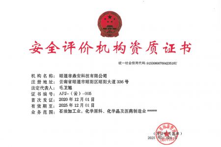 2003年11月10日,昭通市鼎安科技有限公司成立,初始主要從事第三方安全工程技術服務,經(jīng)多年運營,發(fā)展為多專業(yè)綜合科技平臺,為社會提供多種專業(yè)技術服務工作。 現(xiàn)公司注冊資金為1200萬元,公司法定代表人:毛衛(wèi)旭。公司主要業(yè)務:安全評價、安全標準化評審、安全工程技術服務;環(huán)境監(jiān)測、職業(yè)衛(wèi)生檢測、檢驗;法律訴訟及非訴訟服務;司法鑒定、固定資產(chǎn)投資項目節(jié)能服務;工程咨詢;工程測量測繪;安全教育培訓等。是安全生產(chǎn)服務、安全教育培訓機構(gòu),也是環(huán)境監(jiān)測和職業(yè)衛(wèi)生服務機構(gòu),同時也是綜合的檢測檢驗、綜合科技平臺服務機構(gòu)。多年來為公、檢、法、司、軍、警、海關、仲裁、安監(jiān)、工礦商貿(mào)企業(yè)、社會團體及個人提供多專業(yè)技術服務。